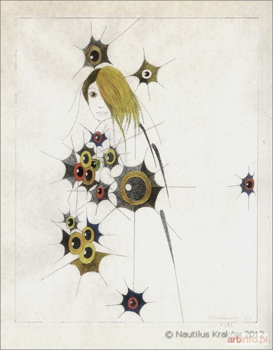 Kserokopia kolorowana ecoliną; wym. komp.: 30,7 x 24,1 cm (arkusz: 42,3 x 30,2 cm); sygn. tuszem p.d.: K. Mikulski 88 / 1(3). Dar artysty dla B. i F. Kędziorków; wg świadectwa obdarowanej artysta wykonał tylko jedną taką pracę, choć w zamiarze miał trzy; praca oprawiona, na odwrocie opis kolekcjonerski.