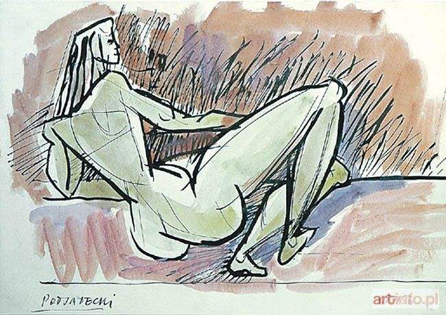 tusz, akwarela, papier, 25,5 x 36 cm;