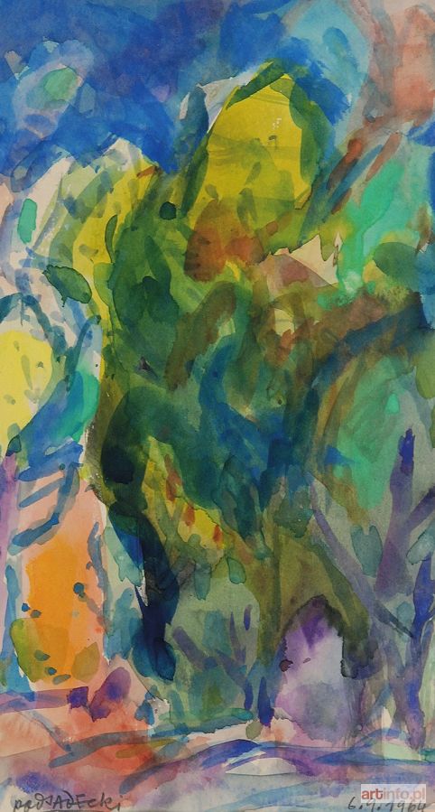 akwarela, papier; 35 x 18,5 cm; sygn. i dat. ołówkiem u dołu: PODSADECKI, 6.9.1964 na odwrocie tytuł: "GĄSZCZ" praca pochodzi ze zbiorów żony artysty Marii Podsadeckiej.