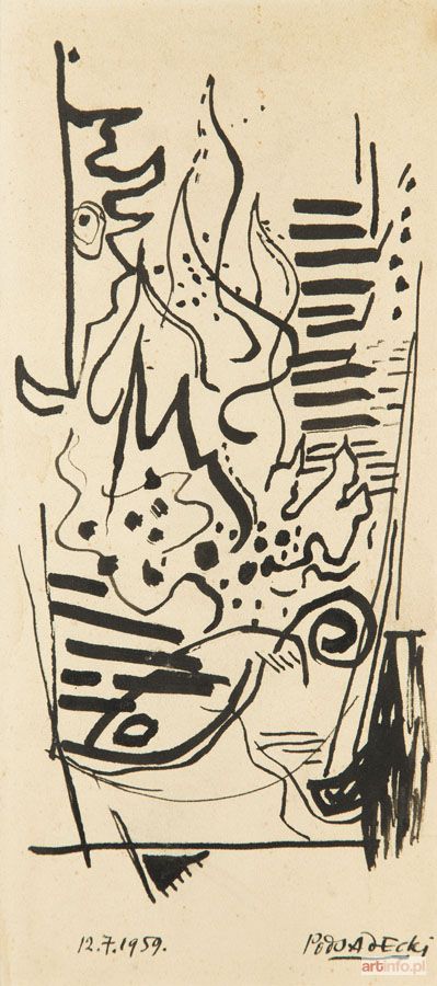 tusz/papier, 32,2 x 14 cm sygnowany p.d.: 'PODSADECKI', datowany l.d.: '12.7.1959.'