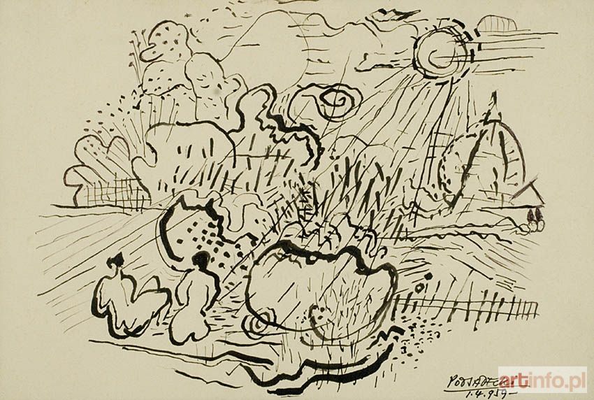 Tusz, papier; 12 x 31 cm w świetle passe-partout Sygnowany p. d.: Podsadecki | 1.4.959-