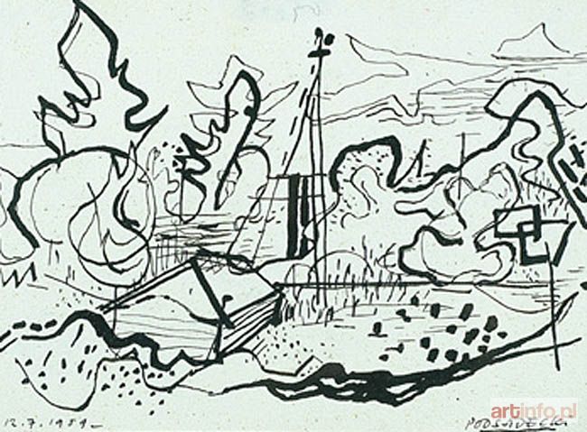 Studia artystyczne rozpoczął w 1923 w Szkole Przemysłowej w Krakowie. Po nawiązaniu kontaktów z T.Peiperem i W. Strzemińskim skierował swoje zainteresowania ku awangardowej typografii. W l. 20. opracowywał szatę graficzną czasopism Zwrotnica i Linia; w 1926 oraz uczestniczył w pierwszej wystawie grupy Praesens. Wczesna twórczość Podsadeckiego wpisuje się w pełni w ramy konstruktywizmu; strukturę obrazów tworzą precyzyjne układy geometrycznych figur. W późniejszych pracach artysta wprowadził miękkie kontury i biomorficzne kształty wzbogacając zarazem jakości fakturowe swych prac. Istotę tych kompozycji stanowiły wzajemne relacje przenikających się i przeplatających form abstrakcyjnych, przedmiotowych i organicznych. W tej stylistyce mieści się oferowany rysunek, w którym formy pejzażu określone zostały mocnym, giętkim, miejscami splątanym konturem.