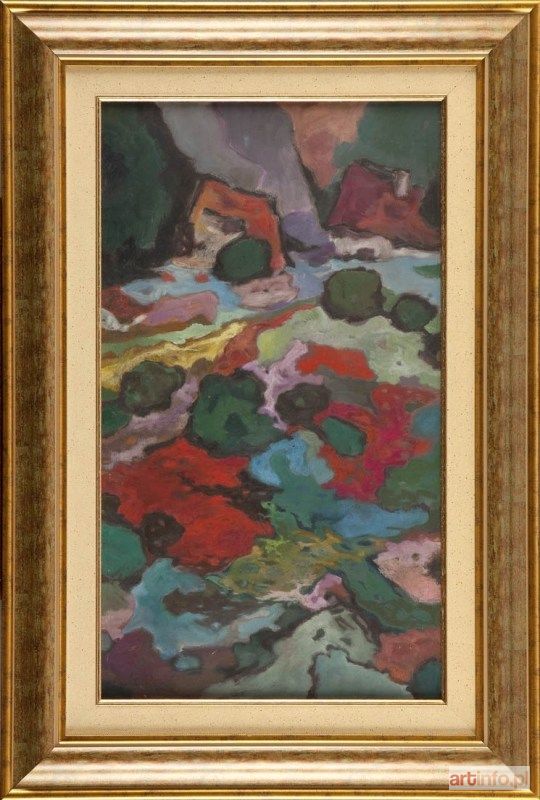 olej/płyta, 71 x 41 cm sygnowany i opisany na odwrociu: `K. PODSADECKI | 1960 | PEJZAŻ GÓRSKI`