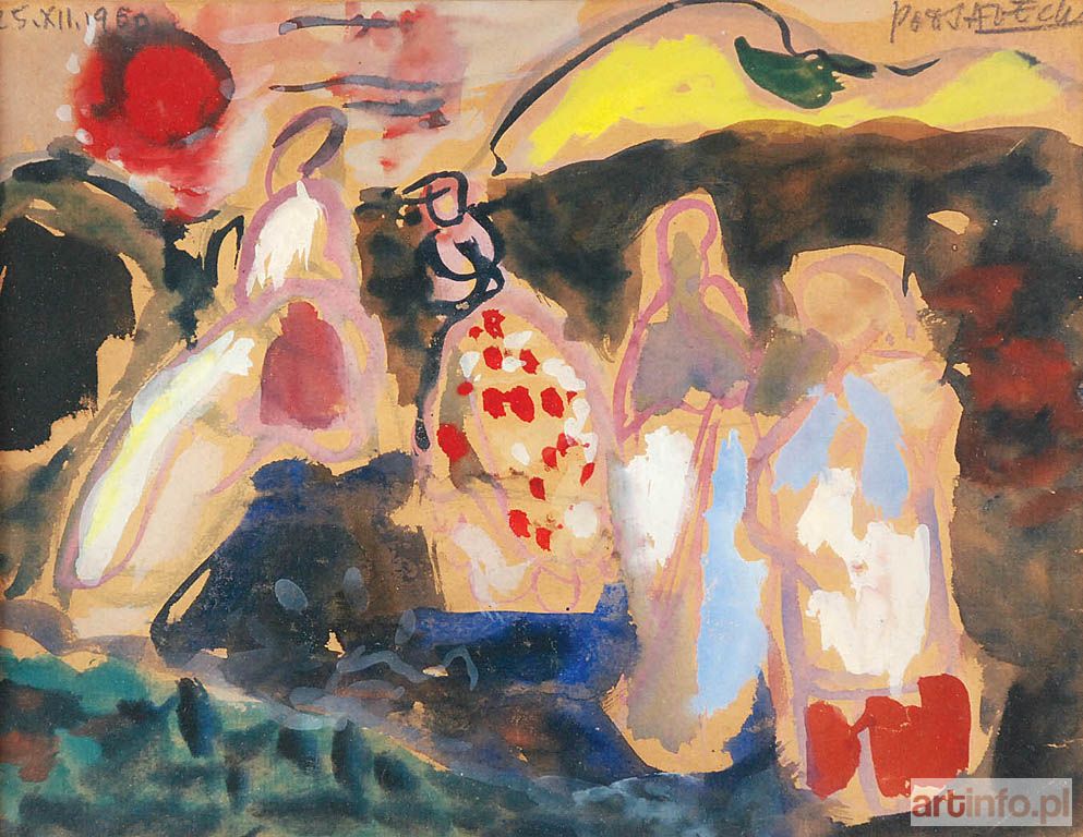 PODSADECKI Kazimierz | Pejzaż o zachodzie z postaciami Boże Narodzenie], 1960