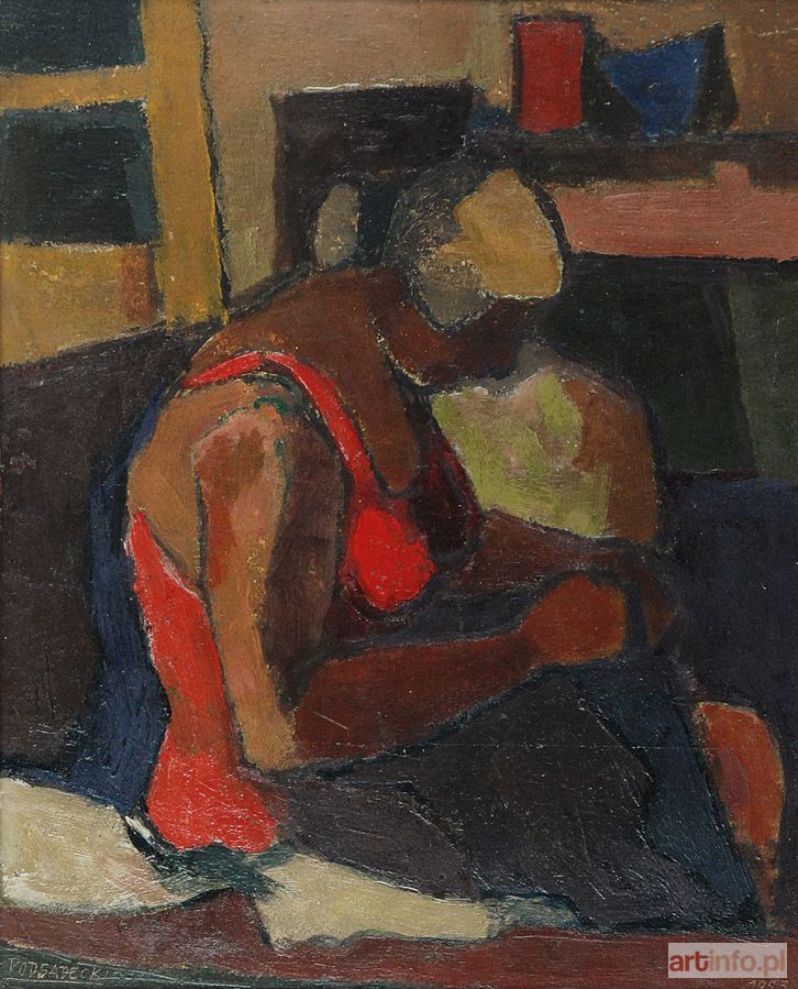 tempera olejna, sklejka; 40 x 33 cm; sygn. l. d.: PODSADECKI (wydrapane w malaturze); data p. d.: 1953 (wydrapane w malaturze); na odwrocie opis autorski: 1953 / KAZ. PODSADECKI / "SZYJĄCA" / TEMPERA OLEJNA / 30 x 40, 5 cm (ołówkiem).