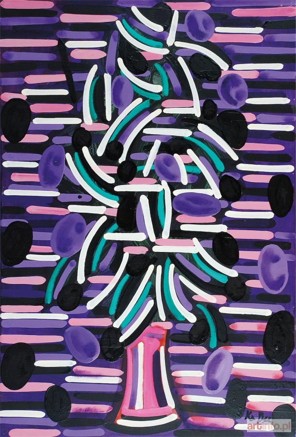 olej, płótno; 90 x 60 cm; sygn. p. d.: KaDee; na odwrocie opis autorski: K. Dudziński / Ka Dee / 2015 / t: kwiaty w wazonie / olej, płótno / 90 x 60 cm.