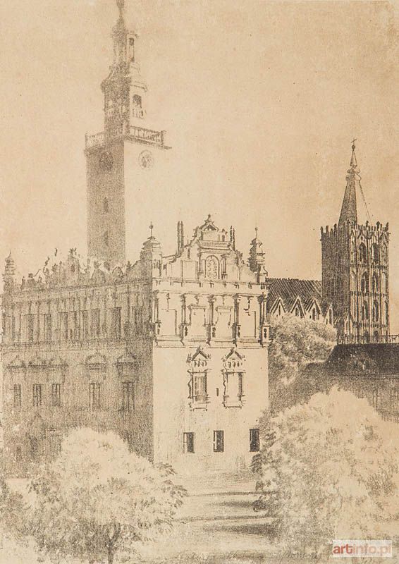 Autolitografia, papier; 51 x 37 cm ( w świetle p-p); plansza 56,5 x 39 cm Sygnowany ołówkiem. p.d.: LWyczół; śr. d. napis: Ratusz w Chełmnie (Pomorze) Grafika ukazała się w tece "Wrażenia z Pomorza", Seria 1 [więcej nie wyszło], którą odbito w 40 egzemplarzach, kamienie zniszczono. Rzadkość kolekcjonerska.
