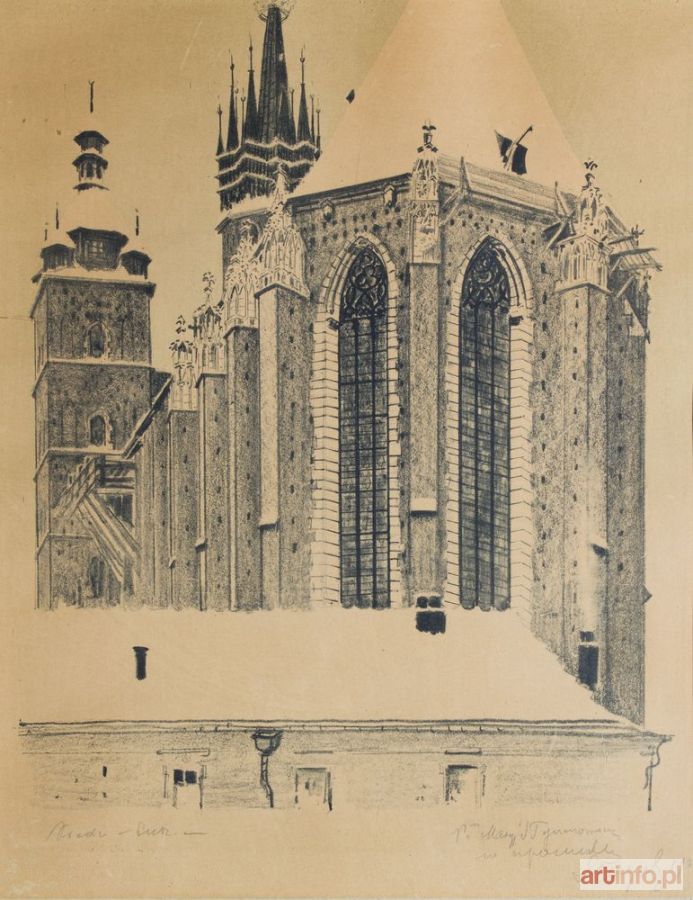 WIDOK OD WSCHODU NA KOŚCIÓŁ MARIACKI W KRAKOWIE, 1926