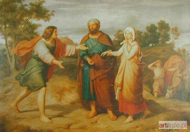 Ludwig Haach należy do grona niemieckich artystów epoki romantyzmu. Pierwsze nauki pobierał w Miśni u wybitnego artysty Ludwika Richtera. Od 1830 roku studiował w Akademii drezdeńskiej, w pracowni Augusta Richtera. W 1835 roku otrzymał zlecenie na wykonanie dekoracji pomieszczeń w Pałacu Japońskim w Dreźnie Neustadt. Decydujące, dla jego artystycznego rozwoju, okazały się lata spędzone w Düsseldorfie, gdzie zetknął się z Theodorem Hildebrandtem. Haach malował również portrety, zajmował się też wykonywaniem rycin z dzieł dawnych mistrzów. Twórczość Haacha przynależy do malarstwa nazareńskiego, z którym zetknął się najpierw w Miśni, a następnie w Düsseldorfie. Obraz Elizar przyprowadza Rebekę Izaakowi powstał w 1840 roku i został zaprezentowany w Rheinischer Kunstverein w Düsseldorfie. Ukazuje on epizod z życia Izaaka opisany w Księdze Rodzaju. Obraz ten jest pierwszą, w pełni dojrzałą kompozycją malarską Haacha, powstałą w kręgu oddziaływania romantycznego malarstwa Nazareńczyków, jakie wykształciło się w Akademii düsseldorfskiej w latach trzydziestych i czterdziestych XIX stulecia. Widać to w bogatej, z rozmachem zaplanowanej scenie. Artysta umieścił w centrum obrazu głównych bohaterów tego biblijnego zdarzenia, nawiązując do kompozycji religijnych malowanych przez Nazareńczyków we wspomnianym okresie. Na dalszych planach, z dużą biegłością, ukazał grupy postaci i zwierząt, różnorodność krajobrazu i wielkie bogactwo form. Obraz wyróżnia się stonowaną, urozmaiconą kolorystyką, ujawniającą wielką wrażliwość artysty. Rozmach przedstawienia, przemyślana tematyka oraz wymowa ideowa dzieła wywodzą się z romantycznej koncepcji sztuki, jaka ukształtowała się w Akademii düsseldorfskiej w drugiej ćwierci XIX wieku. Opracowane tam zasady kompozycji historycznych i religijno-historycznych oraz wyjątkowe wyczulenie na piękno i bogactwo natury, wpłynęły na dwa pokolenia artystów europejskich i amerykańskich, którzy zetknęli się z tym centrum sztuki. Obraz musiał cieszyć się dużym powodzeniem, skoro artysta wykonał jego pomniejszoną wersję. Oryginalną kompozycję należy uznać za niezwykle ciekawy przykład malarstwa nazareńskiego w polskich zbiorach.