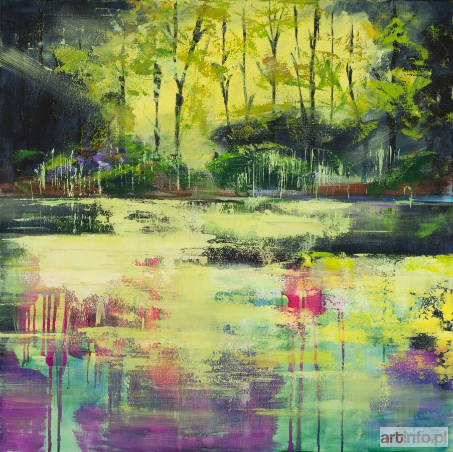 Akryl, tusz, płótno, 90 x 90 cm, 2018 r. sygn. p.d.: Luiza Los-P. 2018.