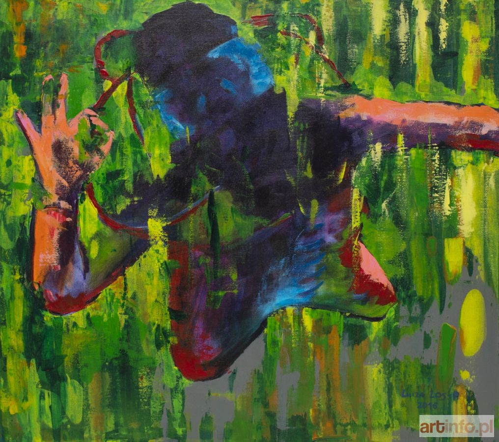 akryl, płótno, 90x80 cm sygn. p.d.: LUIZA LOS-P. 2016, opisany na odwrocie: LUIZA LOS-PŁAWSZEWSKA "POZDROWIENIA Z GŁĘBIN III" AKRYL, PŁÓTNO, 90x80 cm 2016 r.