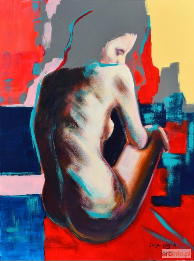 akryl na płótnie, 80 x 60 cm sygnowany p. d. róg: LUIZA LOS-P. 2017’ opisany na odwrocie: ‘ "SIEDZĄCA" LUIZA LOS-PŁAWSZEWSKA, AKRYL, 80 x 60 CM 2017’