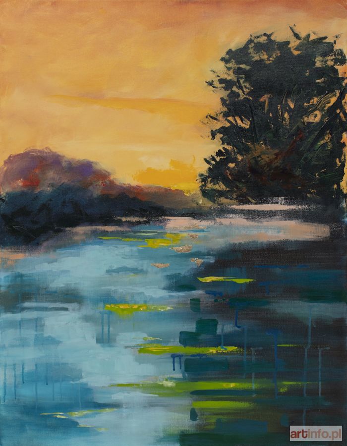 sygn. p.d.: Luiza Los-P. 2019, opisany na odwrocie: “ZMIERZCH” LUIZA LOS-PŁAWSZEWSKA AKRYL, SZLAGMETAL, 2019