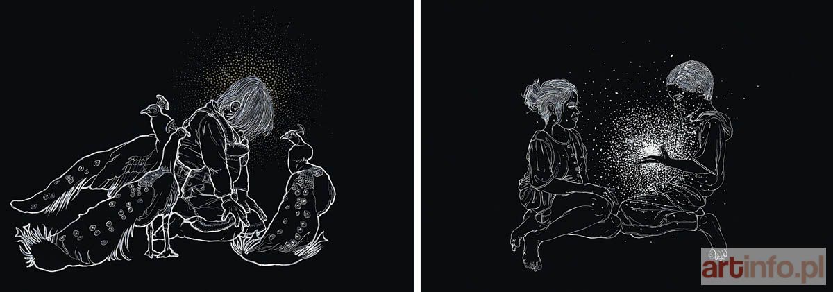 biała ekolina, złoty cienkopis, czarny papier, 2 x 21 cm x 29,7 cm, sygn. na odwrocie: Magdalena Sawicka 2014