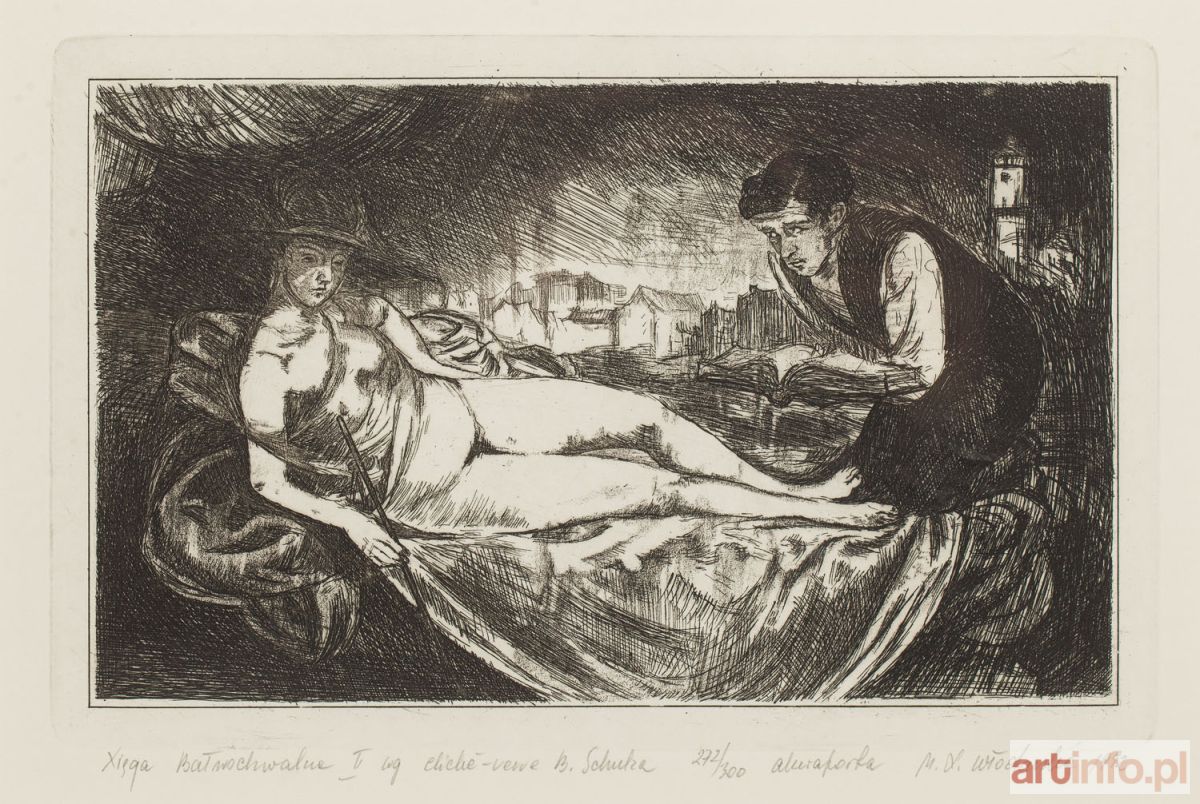 akwaforta/papier, 18,3 x 27,3 cm sygnowany, datowany i opisany u dołu ołówkiem: 'Xiega Bałwochwalna II wg. cliche-verre B. Schulza 272/300 akwaforta M.L. Włodarska 1992'