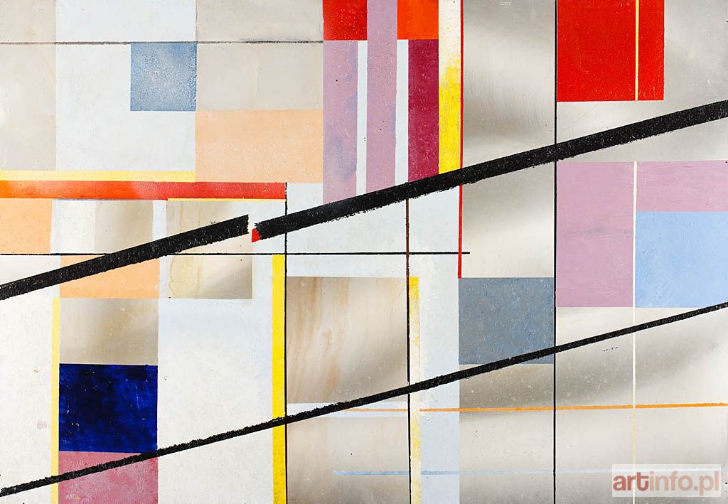 Jedna z czołowych postaci polskiej sceny artystycznej po II wojnie światowej; animator życia artystycznego, krytyk artystyczny, twórca awangardowej Galerii Krzywe Koło, malarz. Studia artystyczne odbył w l. 1946-48 w warszawskiej ASP pod kierunkiem J. Cybisa i J. Sokołowskiego. Od 1947 współpracował z Klubem Młodych Artystów i Naukowców. W okresie socrealizmu skupił się na działalności scenograficznej. W 1955 był współtwórcą Grupy 55 poszukującej nowej drogi artystycznej, zrywającej z tradycją polskiego koloryzmu i opozycyjnej wobec ekspresjonistycznej postawy spod znaku Arsenału. Uczestniczył w Wystawach Sztuki Nowoczesnej (Kraków 1948-49; Warszawa 1957, 1959). Wytyczał nowatorskie kierunki działania awangardy, należał do grona inicjatorów eksperymentalnych spotkań twórczych, takich jak Plener Koszaliński w Osiekach, Biennale Form Przestrzennych w Elblągu i Sympozjum Wrocław 70. Prezentowany obraz, jest dziełem niezwykle kolekcjonerskim, bo należy do najlepszych, pochodzących z lat 1960., abstrakcji opartych na efektach fakturalnych i analizie malarskiej materii. Wąską chromatyczną gamę złożoną z żółcieni i brązów ożywia akcent karminu - horyzontalny łuk, który arbitralnie dzieli płaszczyznę płótna na dwie nierówne części.