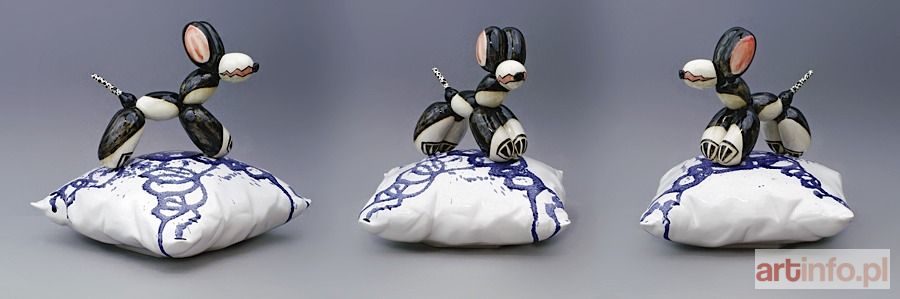 ceramika malowana poszkliwnie i wszkliwnie na poduszce, 29 x 26 x 29 cm,