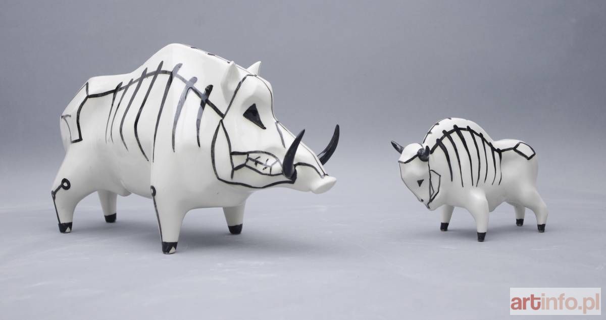 ceramika malowana podszkliwnie i szkliwiona18,5 x 31 x 12 cm i 11 x 7 x 14 cm,. sygn. logotypem od spodu, opis 15/2014 i 187/2014.