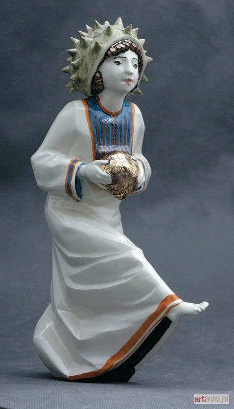 ceramika, malowana podszkliwnie, szkliwiona, malowana naszkliwnie farbami i złotem próby 24 karat, 30 x 9,5 x 11 cm sygn. na spodzie