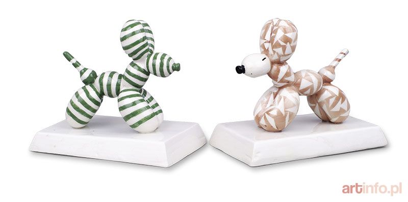 9,5 x 13 x 15 cm każdy, ceramika malowana podszkliwnie szkliwiona szkliwem transparentnym. Logo autora od spodu figurki i opis numeryczny :Candy- 6/2015 i Triangle- 9/2015