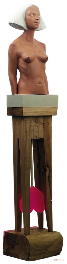 Wahadełko to surrealistyczna odpowiedź na surrealistyczne pytanie: A w jakim materiale lubi Pan pracować najbardziej? Bo jak odpowiedzieć, gdy każdy materiał w zależności od tematu może być tym ulubionym? Źle postawione pytanie rodzi złe odpowiedzi i dlatego pozwalam sobie na wahanie odbiorcy sercem na opak, drażnienie nocnym powidokiem i nadrzędnym ustawieniem klasycznej rzeźby z prywatnego lapidarium twórczego. Materiał to forma zabawy, jak każda zabawa potrafi się znudzić.