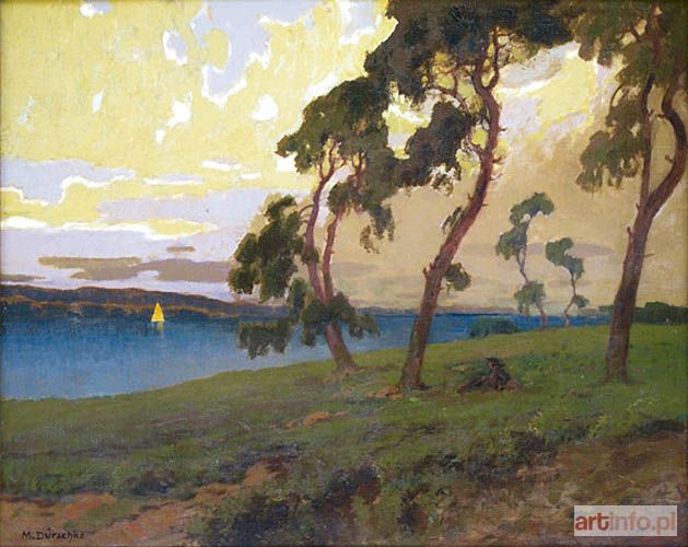 olej, płótno; 60,5 x 75,5 cm; sygnowany po lewej stronie u dołu: M. DŹrschke; na odwrocie nalepki papierowe: Kunsthandlung Kaulsutz (...) | Ring (...) uber der Reisnerschen (...) | Gemalde-Graphik-Kunst (...) | Eigene Werkstatt f. Bildere (...) | Titel: Die Abend (...) | Kunstler: Max (...); KAISER FRIEDRICH-MUSEUM IN POSEN | mit dem Gemeinschaft zur Forderung der Kunst | Reigster: 33 | Name: Max Durschke | Adresse: Berlin, Durnbergstra§e 2. | Bezeichnung: Abendstimmung, l/Lw. | Rucksendung: wie oben