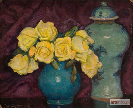 Żółte róże na tle fioletowej kotary, 1944 r.