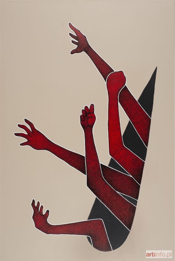Technika mieszana, płótno, 130 x 80 cm, 2016 sygn. i opis autorski na odwrocie.