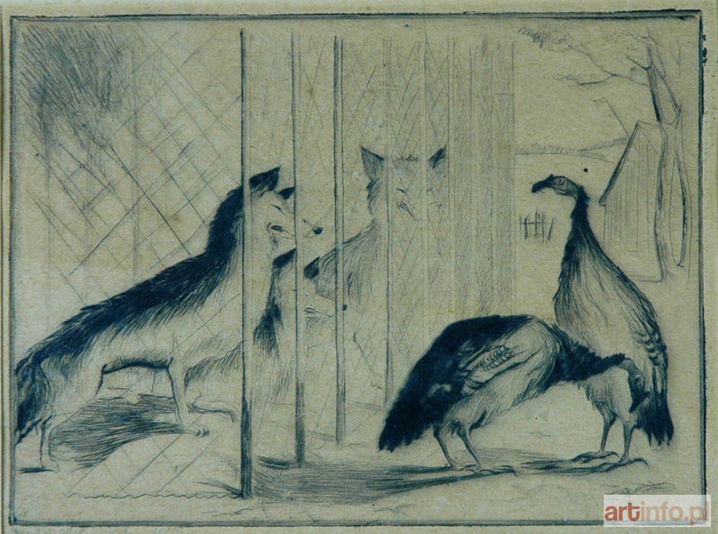 Malarz nieokreślony, polski XX w. | Lisy i indyki