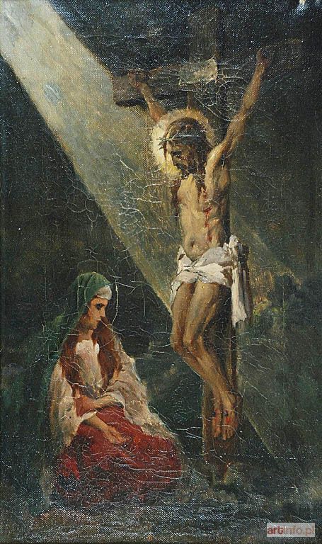 Malarz nieokreślony, polski XX w. | Maria Magdalena u stóp Chrystusa na krzyżu;