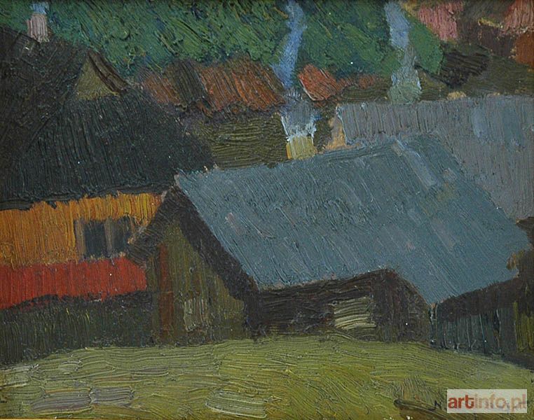 Malarz nieokreślony, polski XX w. | Pejzaż z chatami