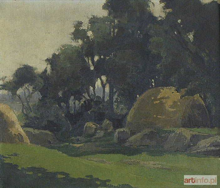 Malarz nieokreślony, polski XX w. | Pejzaż ze stogami