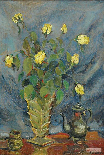 Malarz nieokreślony, polski XX w. | Róże w wazonie