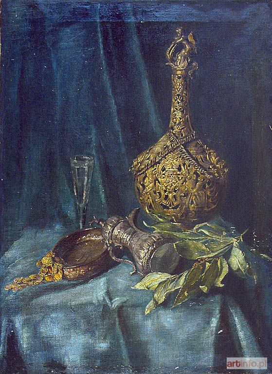 Malarz nieokreślony, XIX w. | Martwa natura z butlą i gałązką wawrzynu