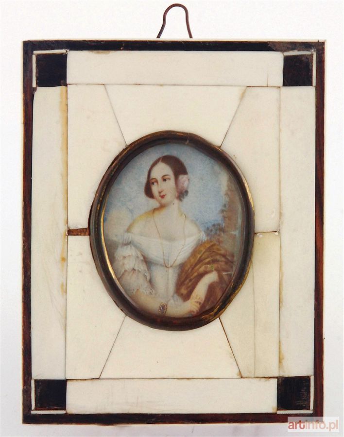 Malarz nieokreślony, XIX w. | Portret kobiety w białej sukni - miniatura