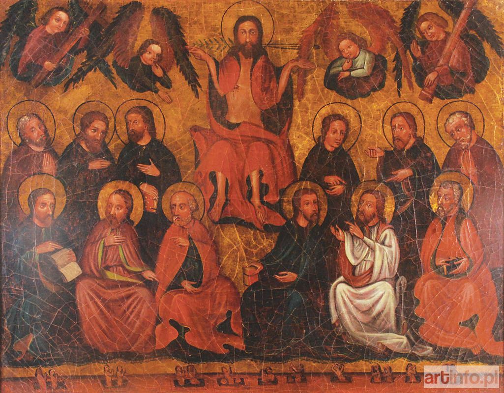 MALARZ nieokreślony, XVI/XVII w. | Chrystus na majestacie z dwunastoma apostołami