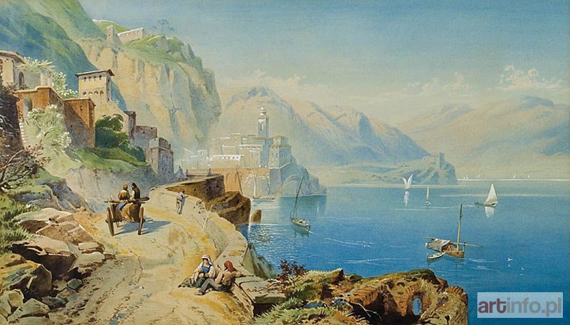 Utrzymana w konwencji XIX akwarelowych widoków Włoch, malowanych zarówno przez turystów jak i przez profesjonalnych malarzy, akwarela jest efektownym, choć późnym nawiązaniem do tej tradycji. Widok przedstawia najprawdopodobniej wybrzeże włoskie w Kampanii w okolicach Amalfi.