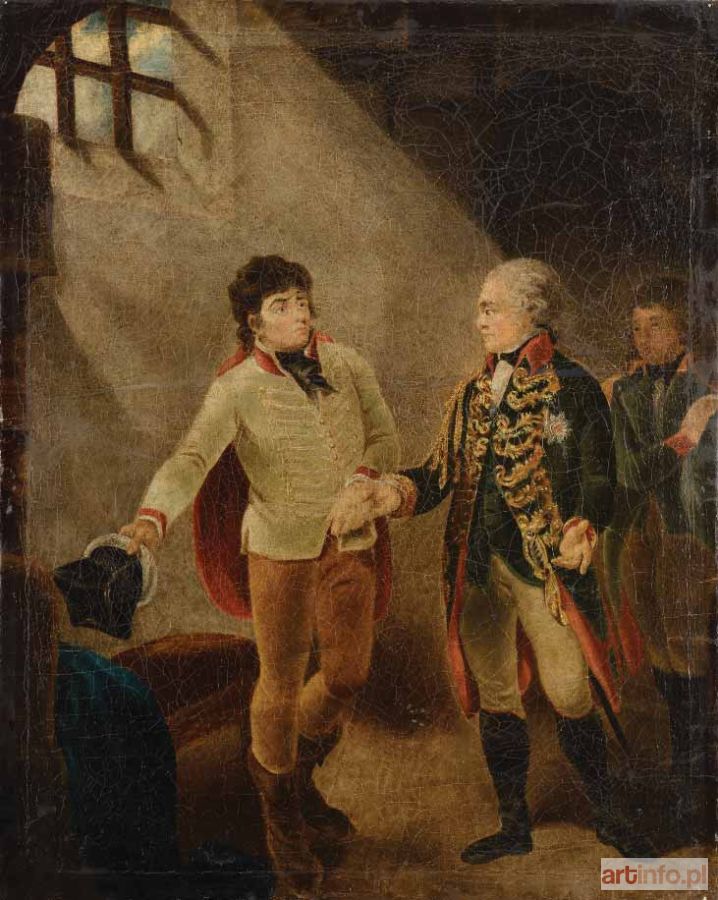 Naśladownictwo obrazu Henry`ego Singletona (1766 - 1839) z 1797 r., wielokrotnie kopiowanego. Waldemar Łysiak w Malarstwie biało-czerwonym (t. I, Warszawa 2012, s. 133 - 136) reprodukuje i omawia jedną z takich kopii, przypisywaną Feliksowi Bąkiewiczowi i namalowaną być może w 1855 roku. Przypomina ponadto, że wileński klasycysta Jan Damel również kopiował kompozycję Singletona. Wg obrazu Anglika wykonał grafikę w technice mezzotinty James Daniell; była ona popularna w Europie, jest także w zbiorach polskich - i mogła stać się podstawą kolejnych naśladownictw.