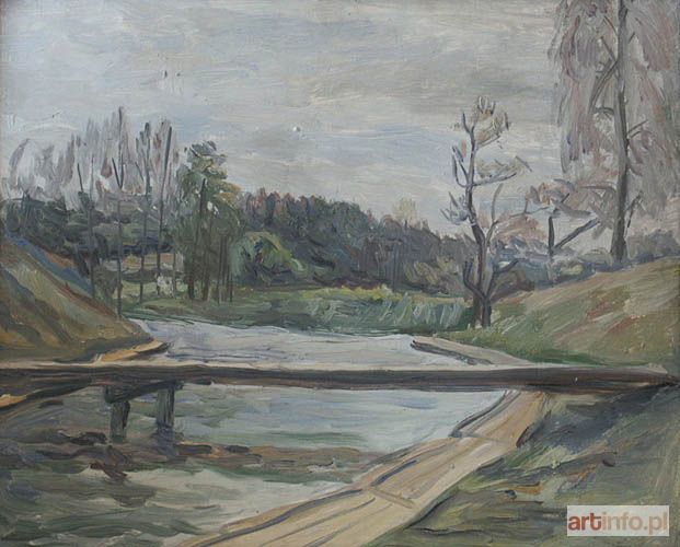 MALARZ nieokreślony | Pejzaż z rzeką i mostkiem