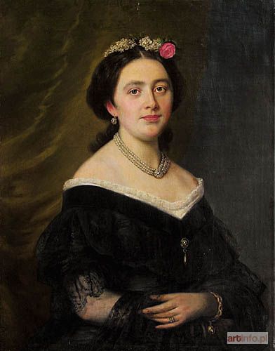 MALARZ nieokreślony | PORTRET KOBIETY W CZARNEJ SUKNI