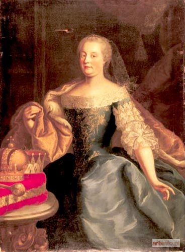 szkoła austriacka 2 ćw. XVIII w. olej, płótno dublowane, 137 x 111,5 cm Na odwrocie stemple: ŻYWIEC - ZAMEK / Nr 8; PAŃSTWOWE / ZBIORY SZTUKI / NA WAWELU DEP. 50 Na krośnie m.in. odręczny napis: Biała sala