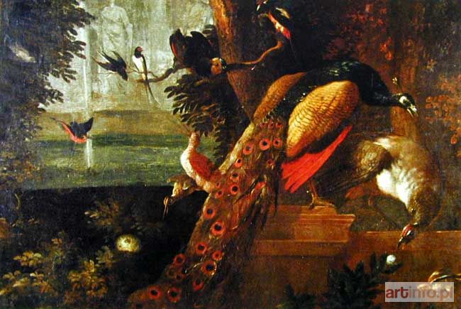 MALARZ nieokreślony - szkoła holenderska, XVIII w. | Ptaki w ogrodzie