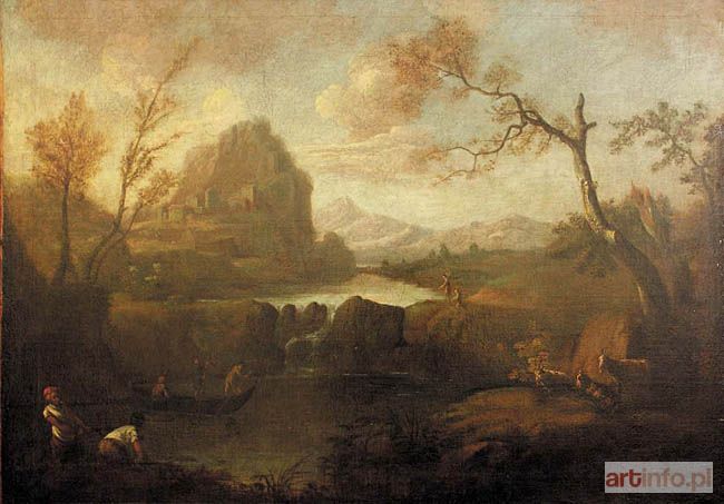 Malarz nieokreślony (XVII/XVIII w.) | Pejzaż rzeczny z rybakami