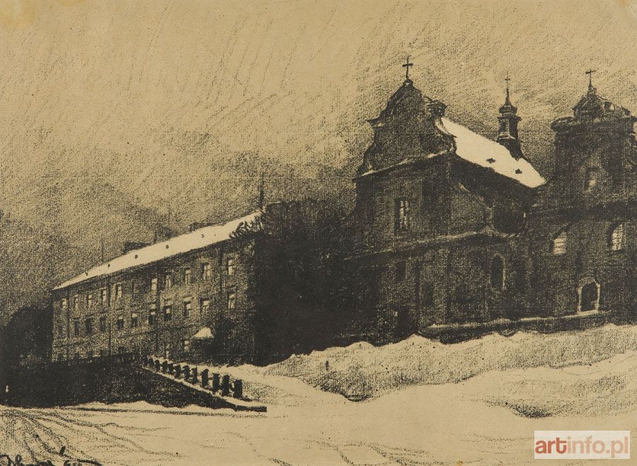 litografia/papier, 29,5 x 40 cm (w świetle passe-partout) sygnowany na kamieniu: `Dobrowolski 915` grafika pochodzi z teki "Lwów", wydanej w l. 1914-15, zawierającej 10 litografii. na odwrocie nalepka z galerii Plater w Warszawie z opisem grafiki LITERATURA: - Katalog zbiorów gabinetu grafiki, t. 1: Grafika polska w l. 1901-1939, Wrocław 1983, s. 71, poz. 43.