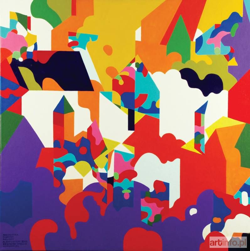 akryl, płótno; 70 x 70 cm; sygn. dat. i opis l. d.: MAZOWIECKA / FABRYKA / BIELIZNY / ALEATORYZM ·2012 / ZDZISŁAW OTELLO / HORODECKI Na odwrocie nalepka autorska z informacjami o pracy.
