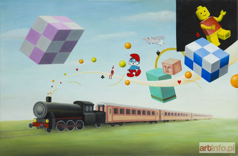 olej/płótno 40 x 60 cm sygnowany, datowany i opisany na odwrociu: 'Arra Fame | tytuł: "MOLEKULARNY POCIĄG MARZEŃ" | 2016'