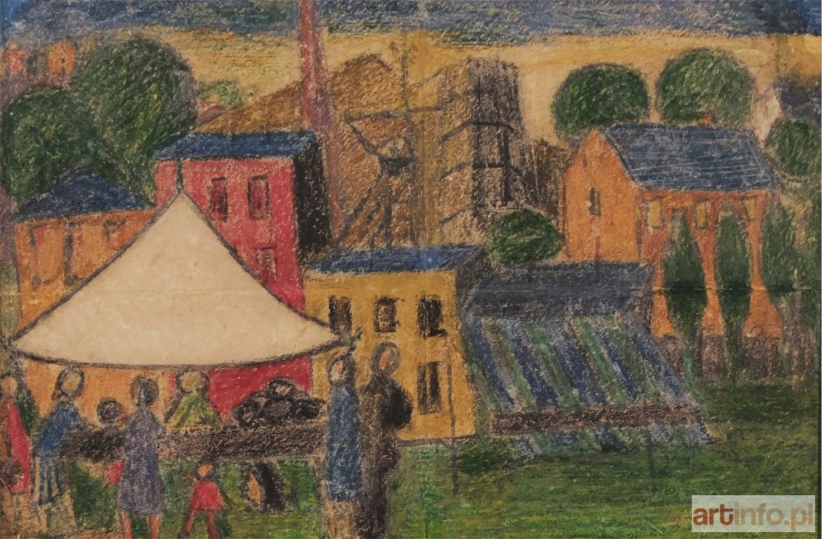 kredka, papier, 13,5 x 20 cm, niesygnowany. Obraz po konserwacji, papier naklejony na karton.