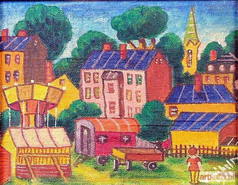 akryl, płyta, 20 x 25,5 cm sygn. p.d.: Wróbel P 1980 na odwrocie naklejka z pismem maszynowym