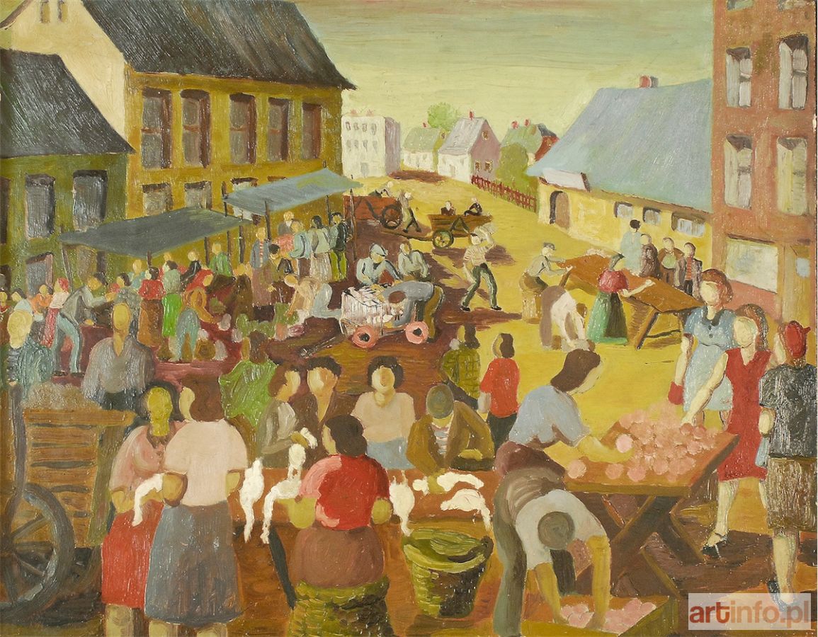 Górnik, jeden z najaktywniejszych członków koła plastyków amatorów przy ZDK kopalni "Wieczorek". W swoich obrazach przedstawiał pejzaże śląskie z charakterystycznymi kominami, hałdami, szybami kopalnianymi. Jego żywiołowe i niezwykle barwne scenki rodzajowe ukazują dzień powszedni i świąteczny mieszkańców górniczych osiedli. Artysta poza malarstwem uprawiał rzeźbę, jednak prac w drewnie i węglu pozostawił niewiele. Reprodukcja bardzo podobnej kompozycji, zatytułowanej "Targ na kapustę", 1950, ze zbiorów Związkowego Muzeum Górniczego w Sosnowcu, została zamieszczona w artykule Marii Żywirskiej "Twórczość plastyczna górników", cz. III, Polska Sztuka Ludowa, 1951, nr 4-5, s. 143, ryc. 13.