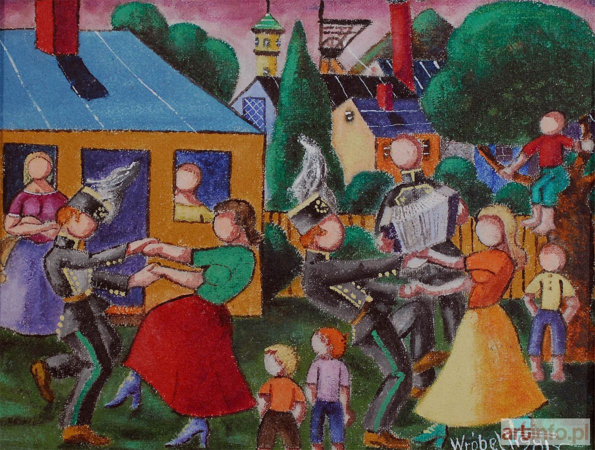 akryl, płótno, 31 x 40 cm, sygn. p.d.: Wróbel P / 1981 r. Na odwrocie informacja Urzędu Konserwatorskiego o wywozie za granicę oraz mało czytelna pieczęć Urzędu.